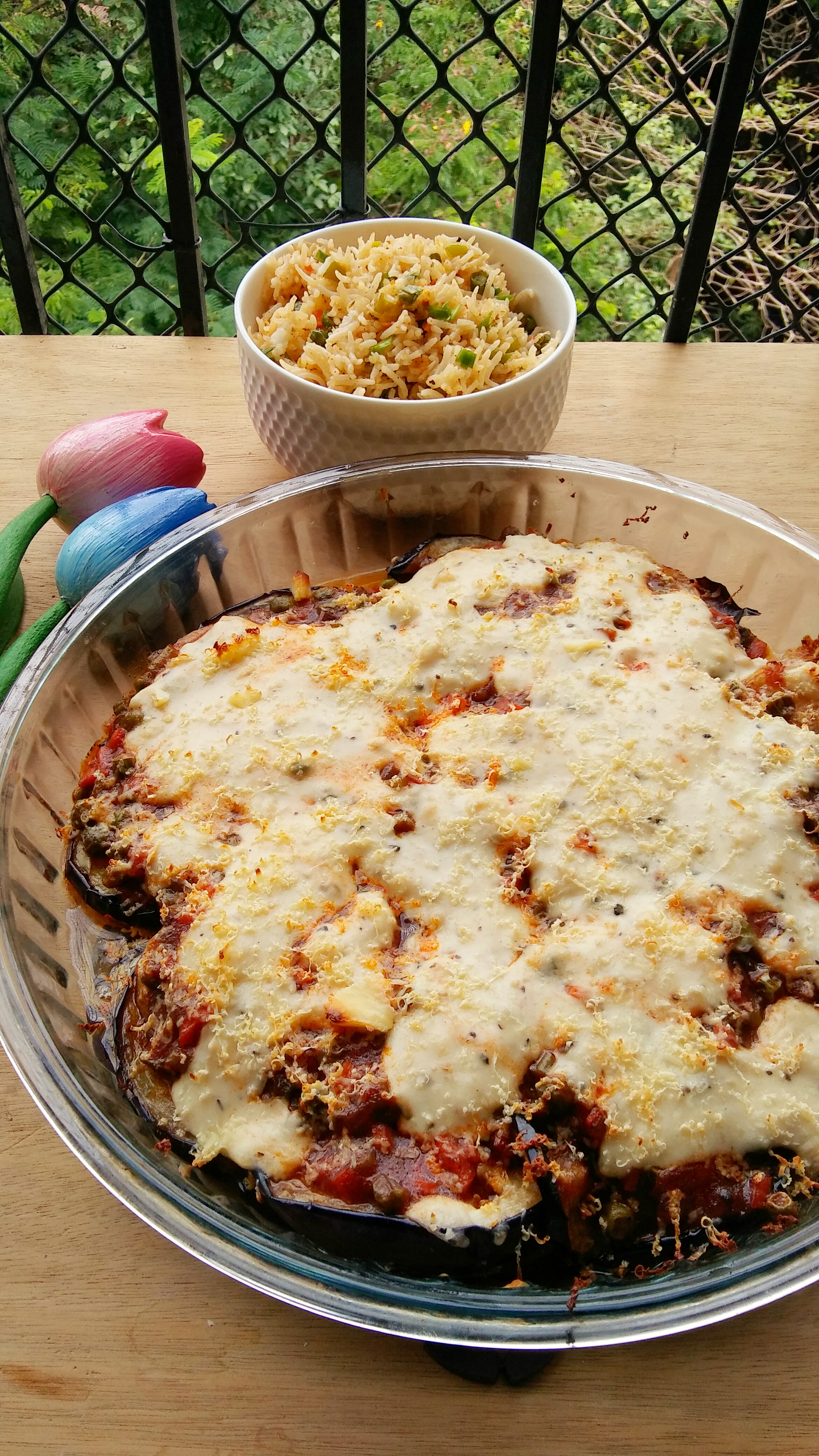 Brinjals are kid’s least favorite veggies, but they are loaded with so many nutrients that it is advisable that you must include brinjals in your diet. This recipe features brinjals with our most loved potatoes along with tangy vegetables and topped with cheese. After eating this recipe brinjals are going to be your kid’s favorite. You can serve this dish with piri piri fried rice, the recipe of which will be soon posted.Â